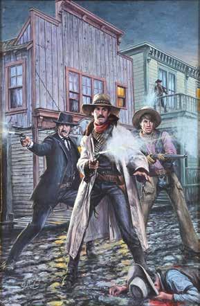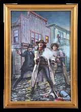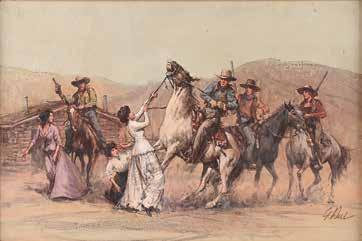 Jesse James Love Story mixed media on paper signed and dated ‘49 in lower right image: 17-1/2” x 22-1/2” framed: 30-1/4” x 34-1/4”