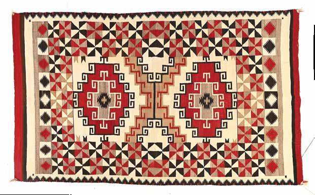 (D) Mid-20th century. Double-saddle blanket overall banded pattern with stepped triangles on one end.