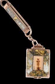 (A) With a stepped diamond pattern encased on the top and bottom with wavy line designs.