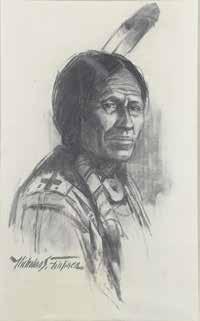 Indian Brave charcoal signed lower-left “Nicholas S. Firfires” sight: 14” x 22” framed: 25-1/2” x 17”