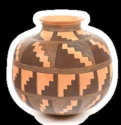 (A) Signed on underside “Marie C. Toririro / Acoma, N.M.”. With alternating squares forming bands of geometric designs. Polychrome. 10-1/2” Dia. x 8-1/2” T.