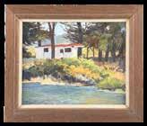 Cabin by a Stream oil on board signed lower-left “Nicholas S. Firfires” sight: 16” x 20” framed: 21-1/2” x 25”