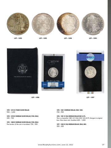 1096 - 1881 CC GSA MORGAN DOLLAR NGC 63 PL. This is a beautiful 1881-CC GSA NGC MS-63 PL Morgan in original box. Nice clean coin. Excellent 600 - 1,000