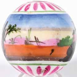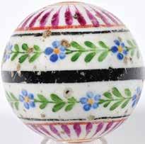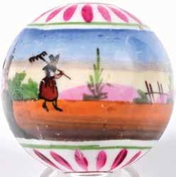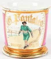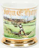 3 - 1/2”t x 3 - 1/2”d. Baseball player shaving mug. Has name John Hayes in gold gilt. Hayes played for NY in the late 1800’s. Has Purple wrap. Wonderful scene of men playing baseball. Signed Germany under base. (Excellent) 2,000 - 4,000