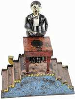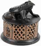 4 - 1/2” x 3 - 1/2” x 3 - 3/4” It has the name “J.G. Soule” in gold gilt. It has “J&C Bavaria” stamped under the base. A nice image of a men fighting fire. (Excellent) 300 - 800