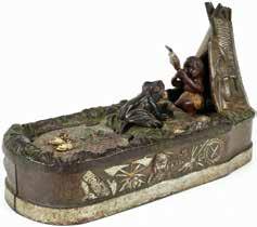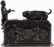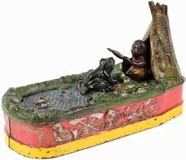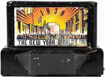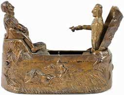 4 - 1/2” x 3 - 1/2” x 3 - 5/8”. Nice image of man riding in kayak. Has name H. D. Bitley in gold gilt. Great detail. Dated 1904. (Excellent) 500 - 1,500