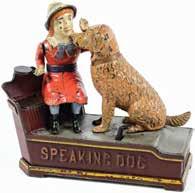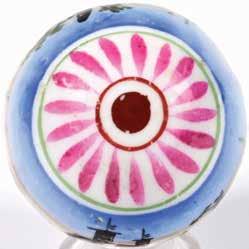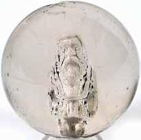 4 - 3/4” x 3 - 3/4” x 3 - 3/4”. Has the name “B.J. Williams” in gold gilt. Small spider hairline under base. Nice image of man purchasing a saw. (Excellent). 50 - 150