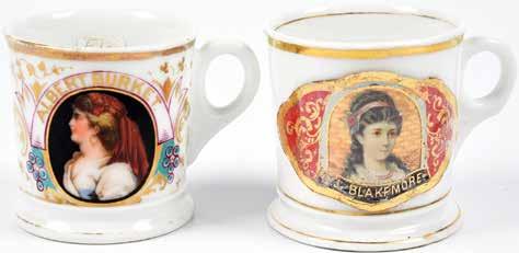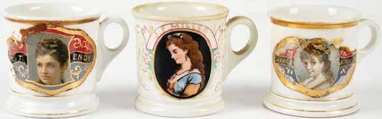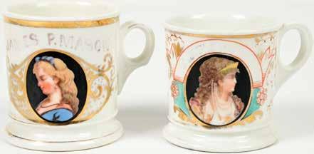 Largest: 4 - 3/4” x 3 - 3/4” x 33/4”. Both mugs include portraits of women in fine dress. (Excellent). 50 - 150