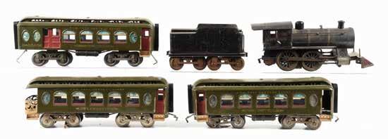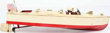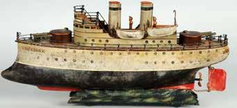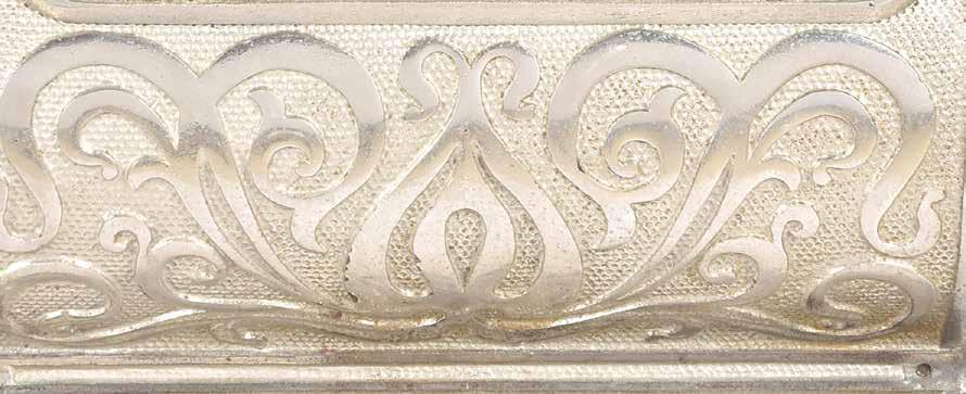 4 - 1/2” x 3 - 1/2” x 3 - 3/4”. Has the name “F.C. Fairhher” in gold gilt. Nice detailed image of sailboat. Minor wear to gold gilt. 50 - 150