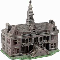 4 - 1/2” x 3 - 1/2” x 3 - 1/2”. Beautiful detail on this Victorian house. Initials are not legible. Stamped T&V Limoges France. Pink wrap. (Excellent) 400 - 800