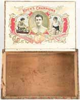 4 - 1/4” x 3 - 1/2” x 3 - 1/2” It has the name “Chas. F. Sweeney” in gold gilt. It has a detailed image of a man punching a bag. (Excellent) 500 - 1,500