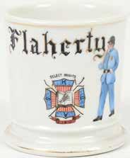 2849 - POLICE OFFICER SHAVING MUG. 4 - 3/4” x 3 - 3/4” x 3 - 3/4”. Has the name “M. Goeller” in gold gilt. Mug is stamped “C.A. Smith Barber Supplies” under base. (Excellent). 100 - 300