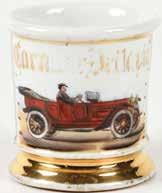 4 - 1/4” x 3 - 1/2” x 3 - 1/2” It has the name “S. Gornstein 1923” in gold gilt. The mug is stamped “Germany” under the base. It has a nice image of a man driving in a touring car. (Excellent) 400 - 800