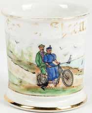 4 - 1/2” x 3 - 3/4” x 4” It has the name “DW Woodring” in gold gilt. The mug is stamped “V&D Austria” under the base. It has a nice image of a man bicycling. (Excellent) 300 - 800