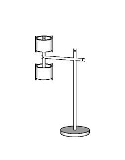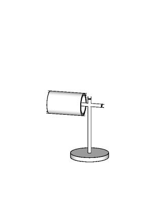 Horizontal arm rotates thirty degrees up or down to allow diluted or focused lighting. Light inside can focus straight out of cylinder or diluted around fabric.