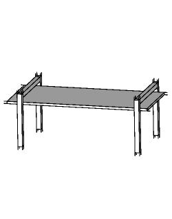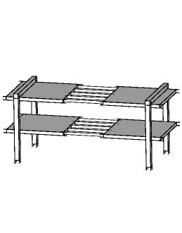 Elongated wooden bookshelf Metal flat and triangular support Individual shelving units