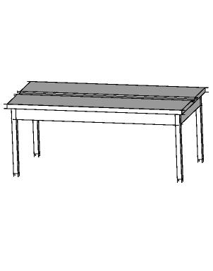 Table top can slide in and out of slit, easily replaceable depending on clients taste and style. Table has a fixed thickness and maximum width and length.