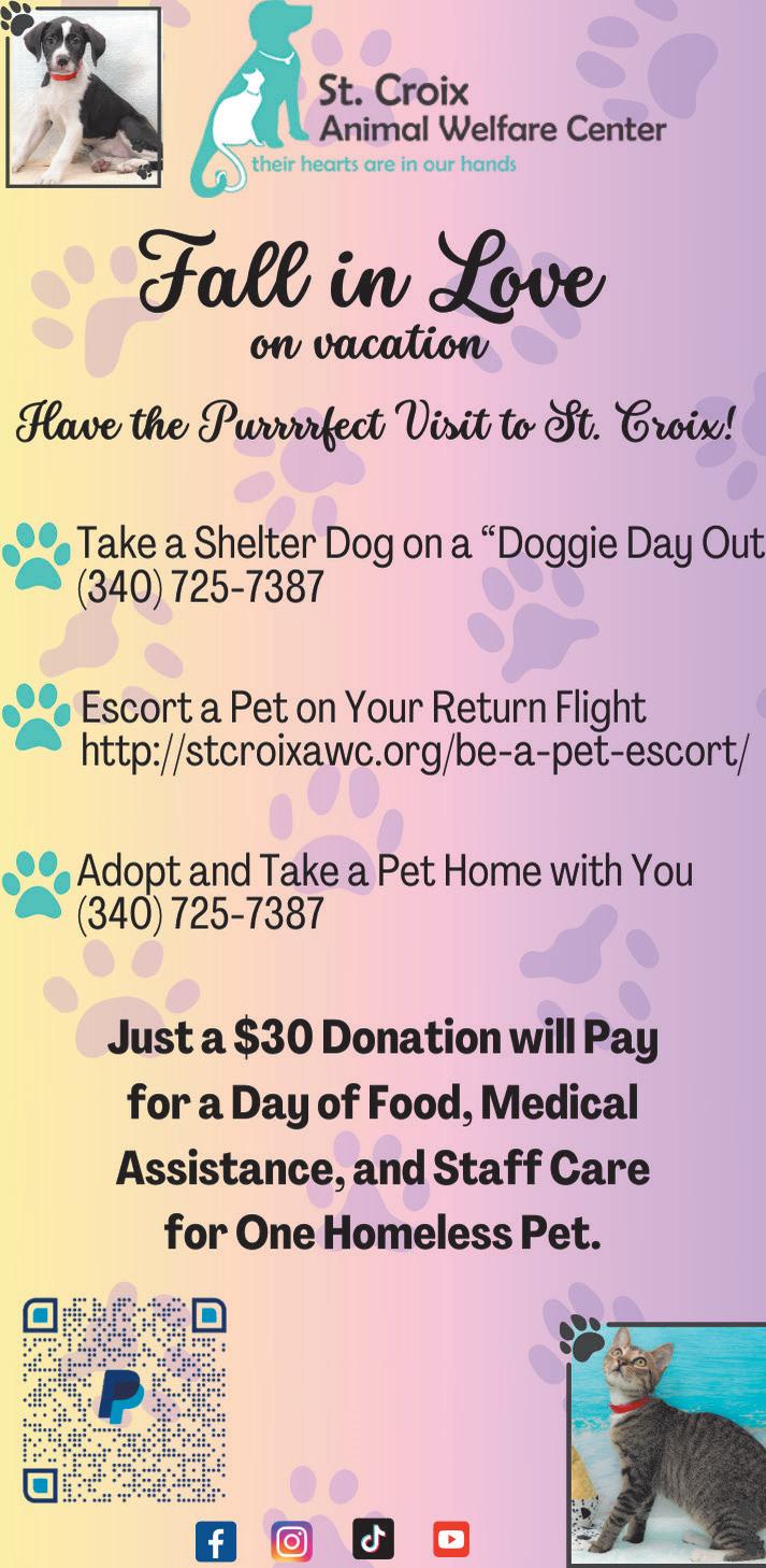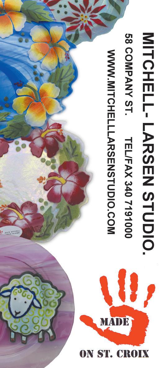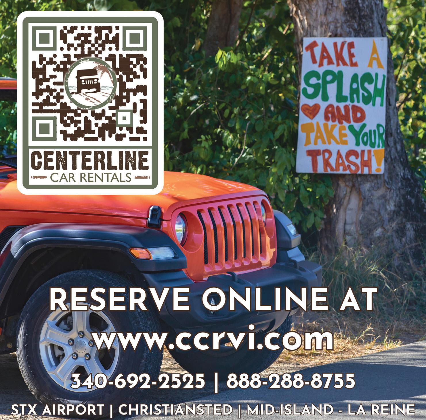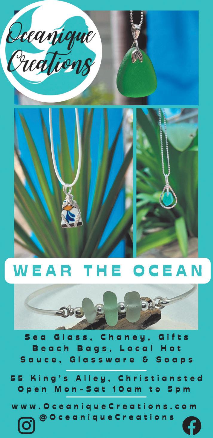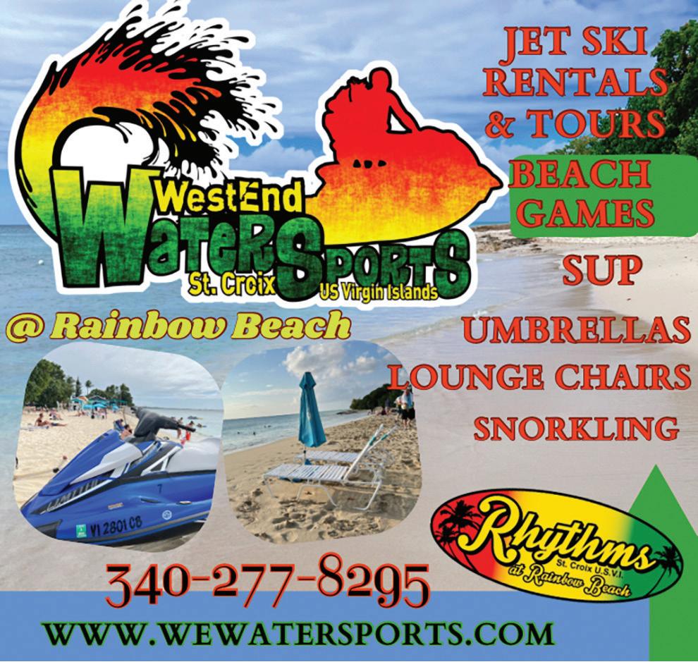 APRIL 24 / MAY 24 ©2024. No part may be reproduced without the written permission of the publisher. Metro Caribbean, LLC St. Croix This Week St. Thomas / St. John This Week St. Thomas In A Day IN THE USA ST. CROIX THIS WEEK PUBLISHER Charlotte Atkins GRAPHIC DESIGNER Chelsea Sunshine DISTRIBUTOR Debbie Bradley MAY ADRIENNE SMITH “When You Weren’t” Digital Painting APRIL ZIVA SANCHEZ “Margarita Sunset” Mixed Media/Oil Pastel COVERS FEATURES 32 Sion Farm Distillery 36 APR Cover Artist, Ziva Sanchez & MAR Cover Artist, Adrienne Smith 39 Limpricht Park’s story, by Nina York 41 Teroro II & Dragonfly, Buck Island Charters 42 Scuba Diving St. Croix 44 Golden Hook Fishing Club 47 SCYC’s Annual Regatta 59 VIAC’s Phase One Comes to Life by Monique Clendinen Watson 60 Fitter Futures for Seniors at Beeston Hill Health & Wellness 62 Cruzan Gardens Christiansted High School students at the Old Barracks. SCLS Peter Carl Limpricht. Susan Wall 39 59 IN EVERY ISSUE 4 EVENTS CALENDAR 7 ATTRACTIONS & TOURS 10 SHOP DUTY FREE 22 EASY SHOPPING GUIDE 24 EAT & DRINK 34 EASY DINING GUIDE 35 FARM STANDS 36 LOCAL ART 39 OUR DANISH CONNECTION 40 WATERSPORTS 46 BEACHES 47 GOLF & TENNIS 48 GOOD TO KNOW 49 STAYING HERE 50 EASY HOTEL GUIDE 51 GETTING AROUND Rental Cars/Taxis/Ferry 54 ROAD MAPS 60 BE WELL 62 BUYING/LIVING HERE MANAGING EDITOR MEDIA CONSULTANT Susan S. Wall 340-773-0715 / 340-277-9642 stcroixthisweek@gmail.com e-edition – stcroixthisweek.com LATEST ISSUES 2 • April/May 2024