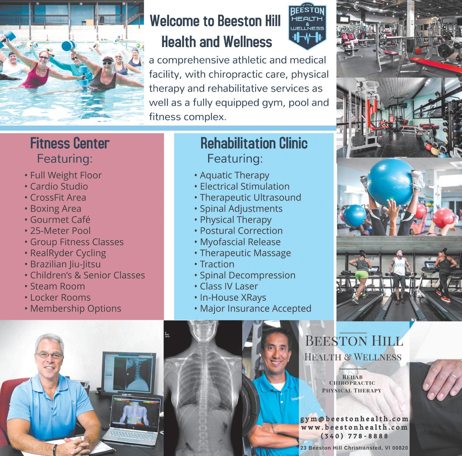knee pain as well as follow up and wellness services. The Fitness Center features weight floor, cardio studio, outdoor boxing area, CrossFit area, battle ropes, 25-meter pool, steam room, and stretching areas, plus group fitness classes to help you reach your body goals. Aesthetic beauty and nonsurgical body slimming treatments including massage, eyelash extensions, facials, laser hair removal, laser lipo, cellulite treatments, personal training, and weight loss coaching is also available by appointment. Let your transformation begin! beestonhealth.com