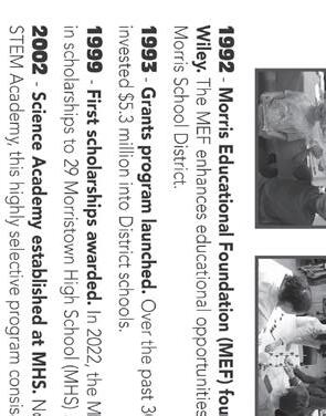 Morristown ONSTAGE is the Morris Educational Foundation’s biggest annual event fundraiser and enables our mission to enhance educational excellence for the 5,700 students and 1,000 educators in the 10 schools of the Morris School District. The MEF is 30 YEARS PROUD serving our schools. Thanks to the donations from our community over the past three decades, the MEF has invested $5.3 million in our students, staff and schools. Look at how our donors have made an incredible impact on the following page, and imagine the possibilities with your continued support.