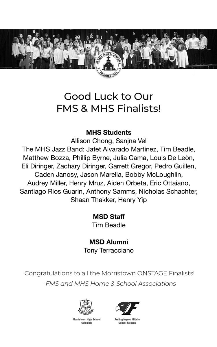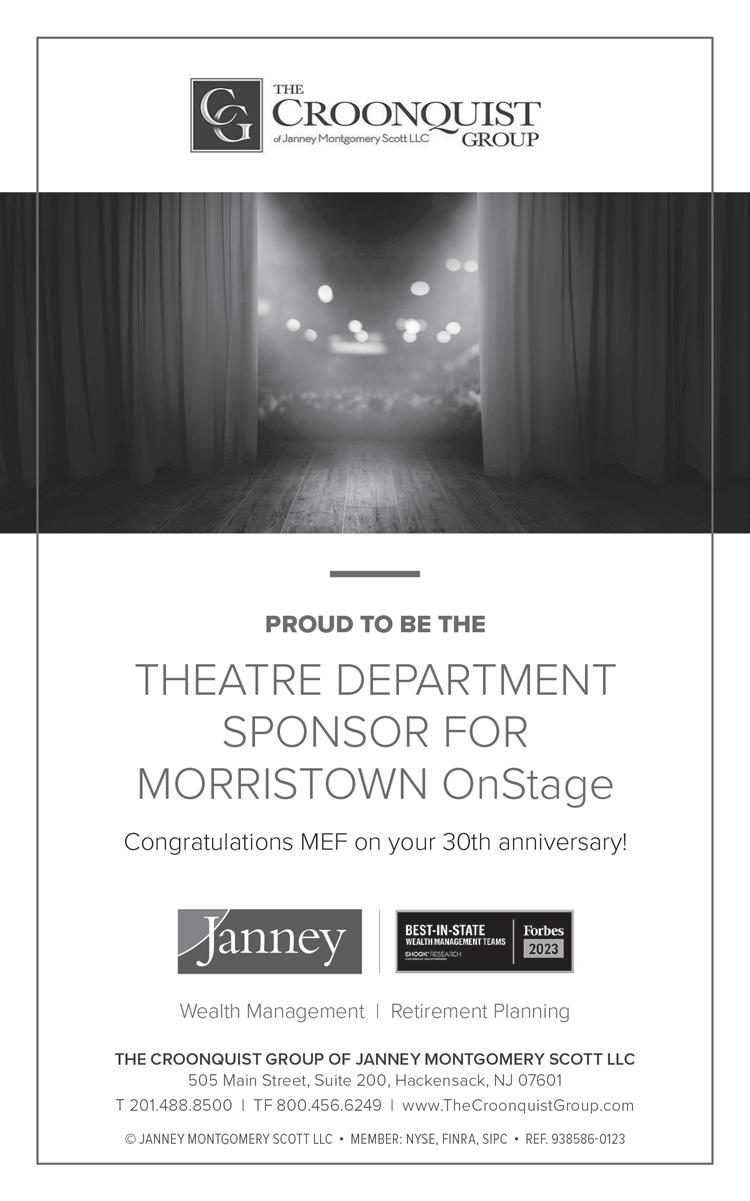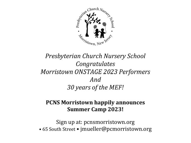 A big thank you to Morristown Medical Center, the Headline Sponsor of Morristown ONSTAGE, and our many sponsors, advertisers and donors who support this event and our mission. We are also very appreciative of the people that made this show possible by giving their time and talents: MOS 2023 Committee, MEF Trustees, MHS Broadcasting Club, MPAC and the many others involved in putting on an outstanding show. And deepest gratitude to all of you in the audience tonight. We hope you have a truly wonderful experience and are thankful for your support!