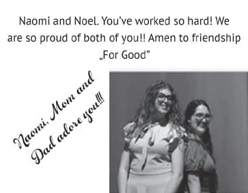 The two friends will be performing “For Good” from Wicked and are inspired by their friendship and love of the arts.