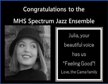 The MHS Spectrum Jazz Ensemble has been part of the MHS landscape for the past four decades, with new members coming and going each year. This fantastic group of talented musicians began playing together at the start of the school year and are very excited to perform “Feeling Good” by Leslie Bricusse and Anthony Newly; the version you likely know is the one sung by Michael Buble!