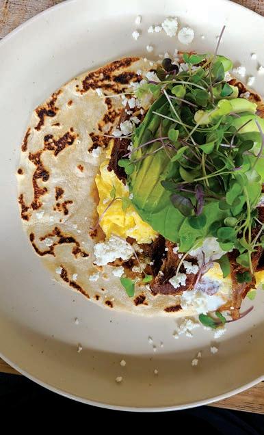 are popular go-tos, though heartier appetites will want to devour breakfast tacos (corn tortillas lled with pastured egg, sweet potatoes, avocado, pickled red onion, queso fresco and chimichurri) or the Orbit Bowl (warm wild rice, avo, egg, homemade kimchi, edamame, carrot, scallion, nori, sesame and ginger) and guzzle a refreshing cold-pressed juice or an almond/ oat milk Iced Chai Latte.
