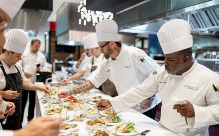 Culinary team members prepare their recipes to demonstrate their learning and then work with Chef to master plate presentation.