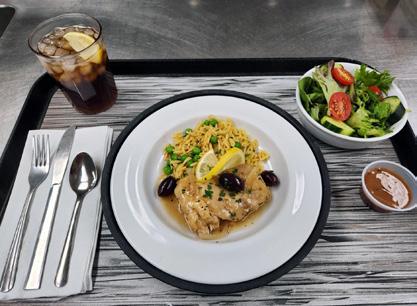 BREAKFAST HAM & CHEESE EGG BITE breakfast potatoes, LUNCH ROTISSERIE CHICKEN roasted chicken quarter, mashed potatoes, green beans, fruit cup, lemon italian ice DINNER SOUTHWESTERN CARNITAS BOWL shredded pork, cilantro lime rice, pinto beans, pico de gallo, pears, chocolate ice cream WEDNESDAY BREAKFAST NITTY GRITTY BOWL cheese grits, cheddar, scrambled egg, bacon, scallions, cold cereal, fruit cup LUNCH PASTA POMODORO rotini, blistered tomatoes, basil, shaved parmesan, side salad, peaches, angel food cake DINNER BEEF BURGUNDY slow braised beef, herb citrus crunch, rosemary polenta, caramelized carrots & pearl onions, banana, chocolate pudding MONDAY BREAKFAST BISCUIT & GRAVY buttermilk biscuit, country gravy, scrambled egg, fruit cup LUNCH TEXAS-STYLE BEEF open-faced beef sandwich, balsamic onions, mashed potatoes, greek roasted broccoli, banana, vanilla pudding DINNER SMOTHERED PORK CHOP peppers & onions, gravy, crispy potato wedges, herb carrots, peaches, lemon italian ice WEEK 1