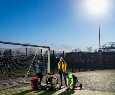 • Sørg for lav blending og jevn belysning i målfeltet, slik at målvakten får gode siktforhold under faste situasjoner. For å sikre god oversikt for keeper, bør lysmaster ikke plasseres på linje med mållinjen.