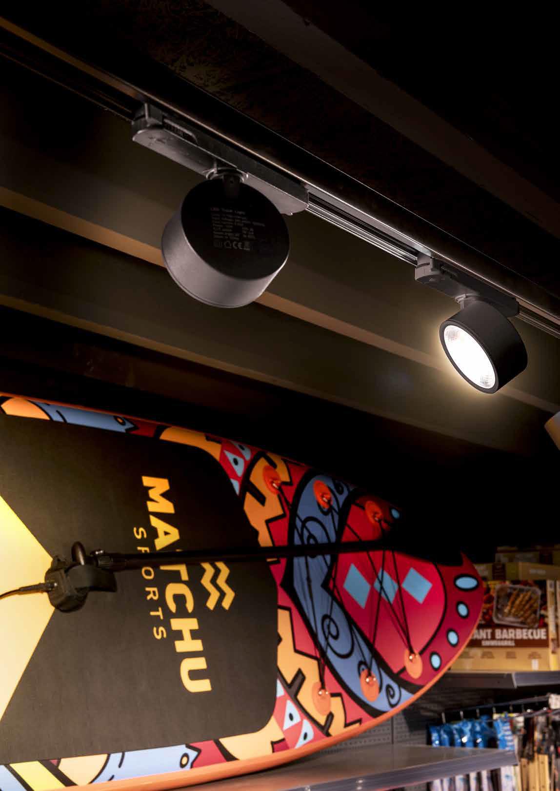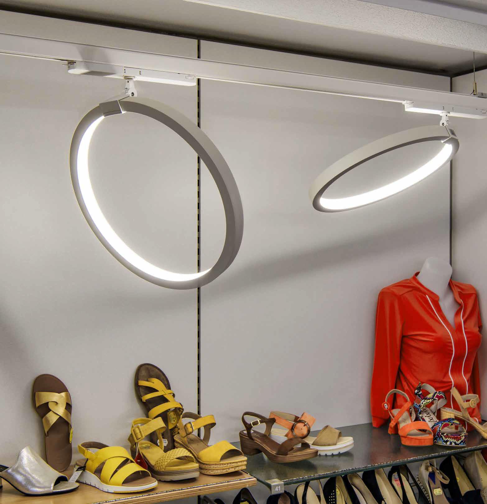 Profesjonell styring: Godt utformet belysning er avgjørende, særlig der det er mye å se. Med fleksible skinnesystemer kan du enkelt fremheve utvalgte objekter med perfekt lyssetting, og justere oppsettet når som helst. 3-faset høyspenningsskinne passer utmerket til butikker, messer og serveringssteder. SLV-belysningsløsninger sørger for optimal belysning og presenterer produkter og utstillingsobjekter på best mulig måte.