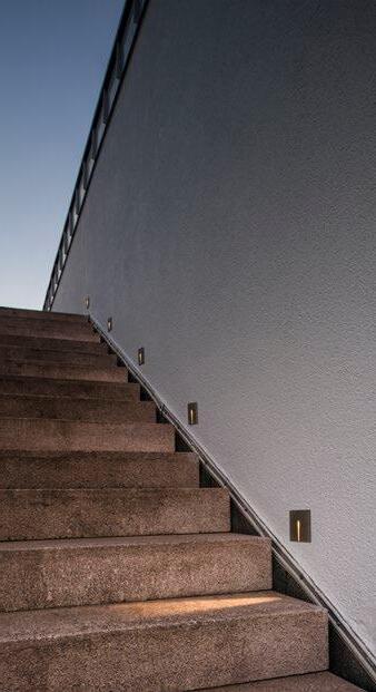 ENOLA® up/down veggarmaturer har målrettet lys som stråler oppover og nedover og dermed fremhever f.eks. at en bygning har to etasjer. Den single ENOLA® i samme design støtter en ønsket fremhevelse av fasadeutformingen, samtidig som den ikke stråler oppover og skaper lysforurensning.