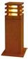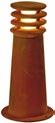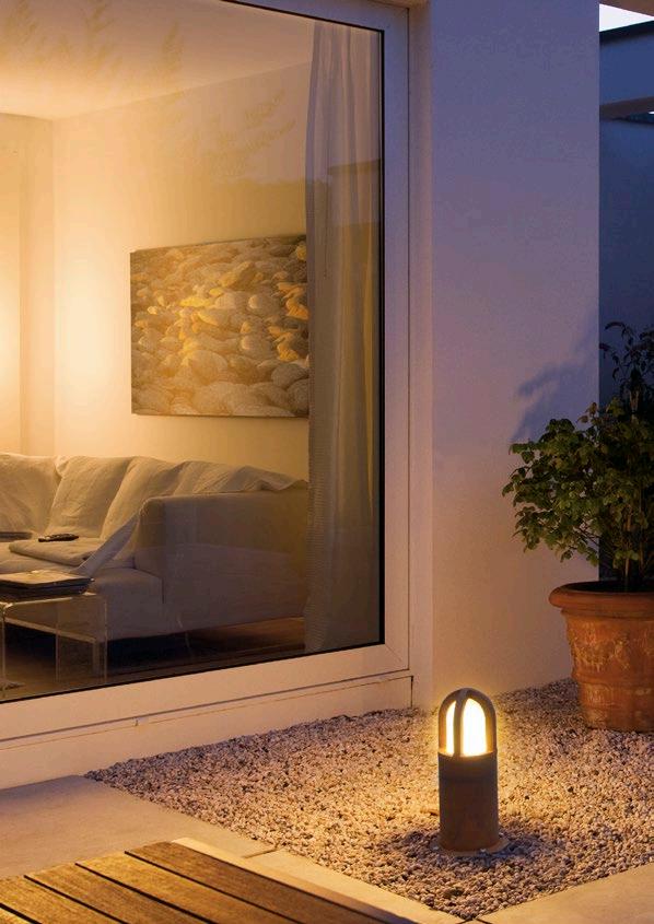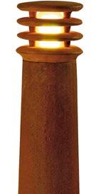 RUSTY® danner med sin spesielle legering et sperrende skikt av jernoksid. Det varer ett til tre år, før den rustne patinaen har utviklet seg fullt ut. Slik endres overflaten i tidens løp, noe som svarer til naturens stadige omforming. De røffe lysene passer slik ekstra godt inn i miljøer preget av planter, jord, tre og stein. RUSTY® utfolder sin unike utstråling hele tiden –uansett om lyset er slått på eller av