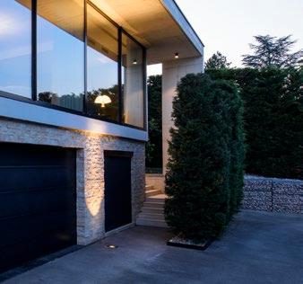 Hvis man også vil gi eiendommen en romlig struktur når det er mørkt, kan man iscenesette f.eks. en mur. De lineære,