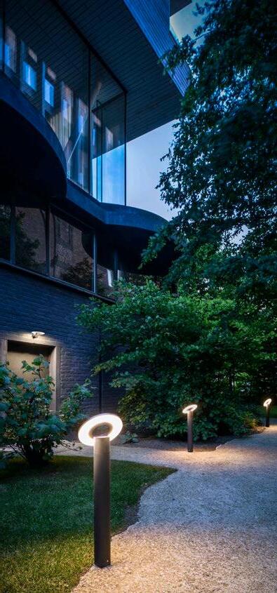 De nye RING-armaturene danner med sin drei- og vippebare LED-ring lyseffekter i utendørs bruksområder.