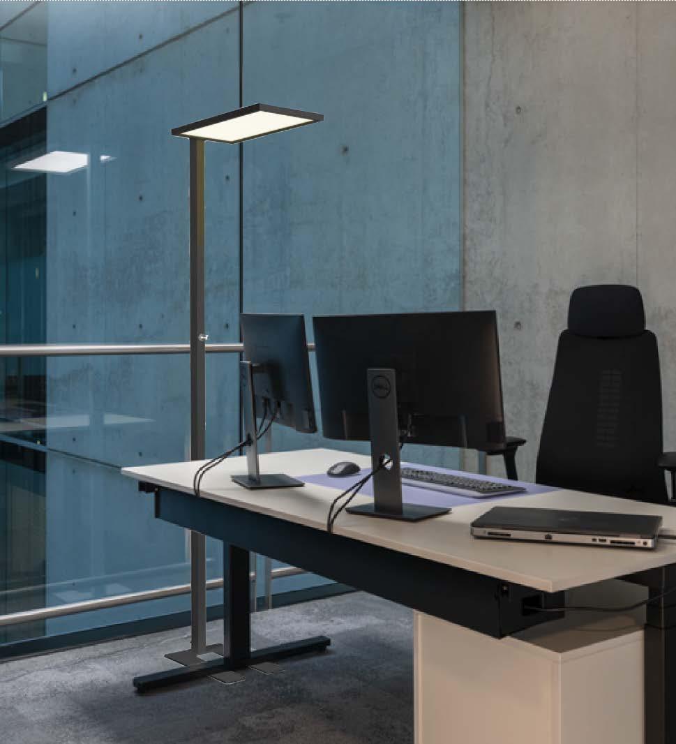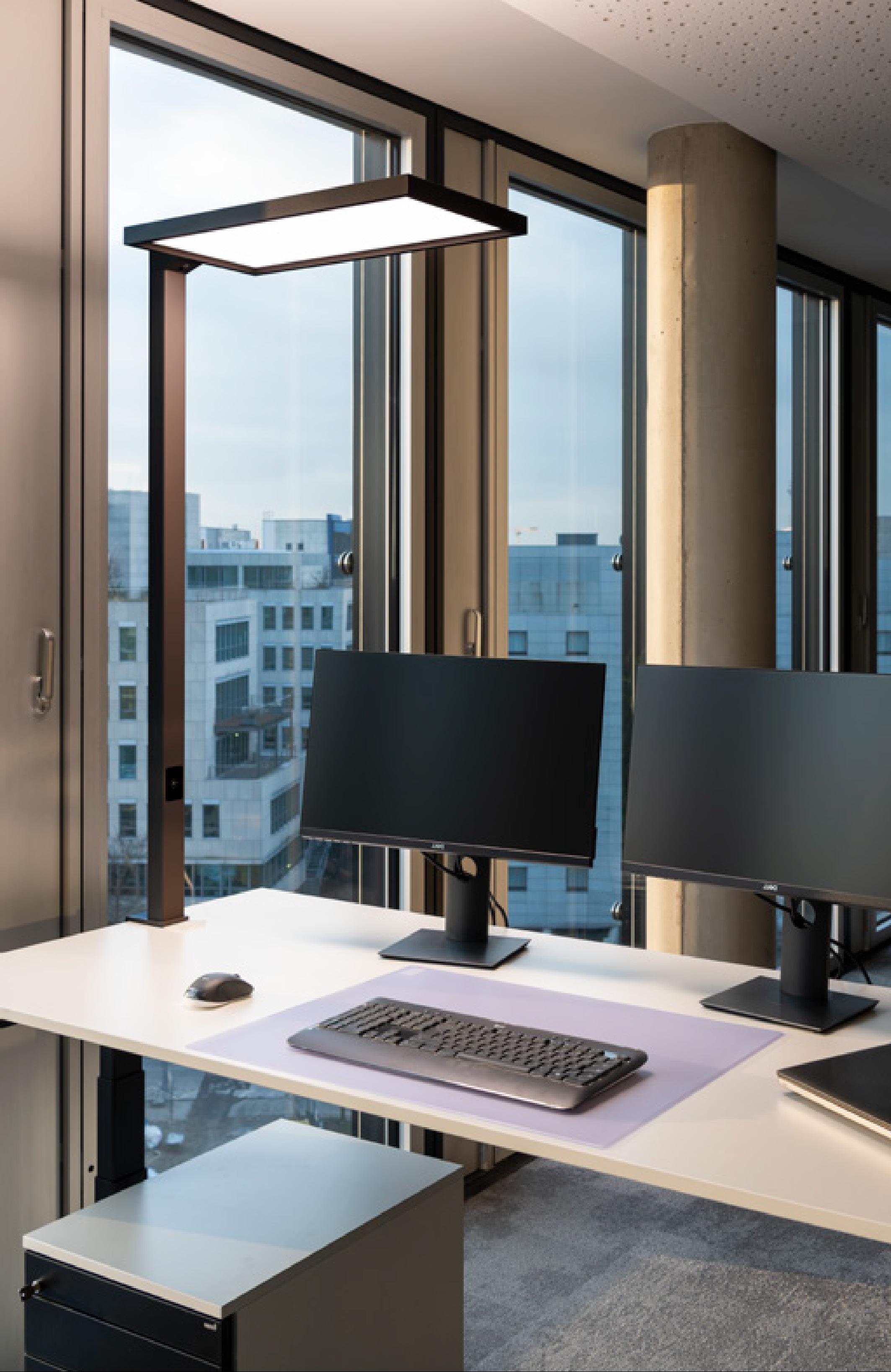 God belysning på arbeidsplassen er avgjørende og krever omtanke. En standardisert og blendfri belysning av både hele rommet og individuelle arbeidsområder legger til rette for vedvarende konsentrasjon og mindre tretthet. I tillegg må det være enkelt og raskt å tilpasse lyset ved skiftende arbeidsoppgaver eller lysforhold, slik at man alltid møter nye behov