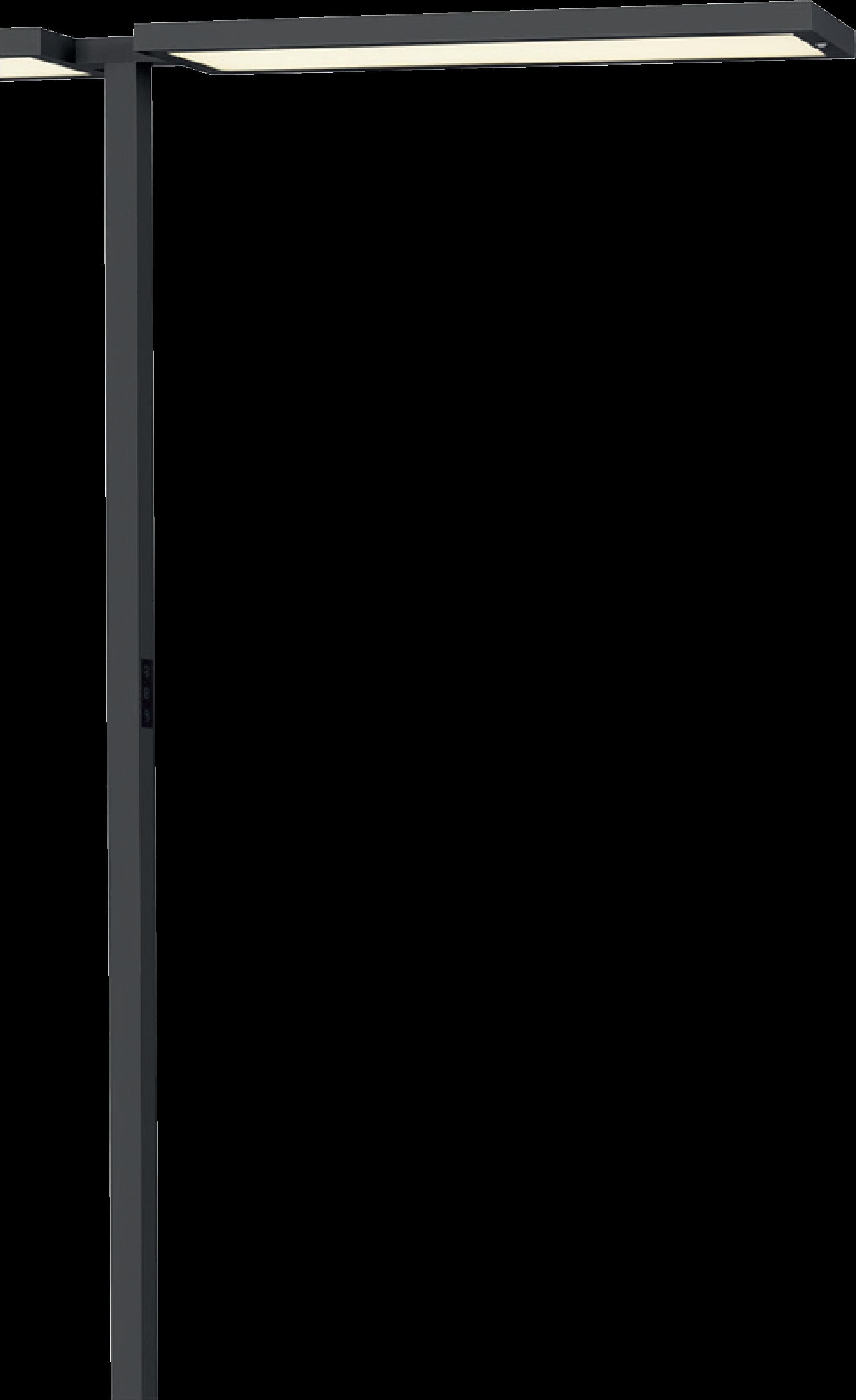 Moderne, kraftfull og allsidig: WORKLIGHT PRO gulvlamper dekker alle belysningsbehov i et moderne kontormiljø. Det særegne er den flate lampehodet med prismatisk optikk, som gir mulighet for separat styring av direkte og indirekte lys. Dobbelvarianten med to lampehoder og en lysstyrke på opptil 20 000 lm sørger for optimal belysning av doble arbeidsplasser med kun én lampe. Når pultene flyttes, følger