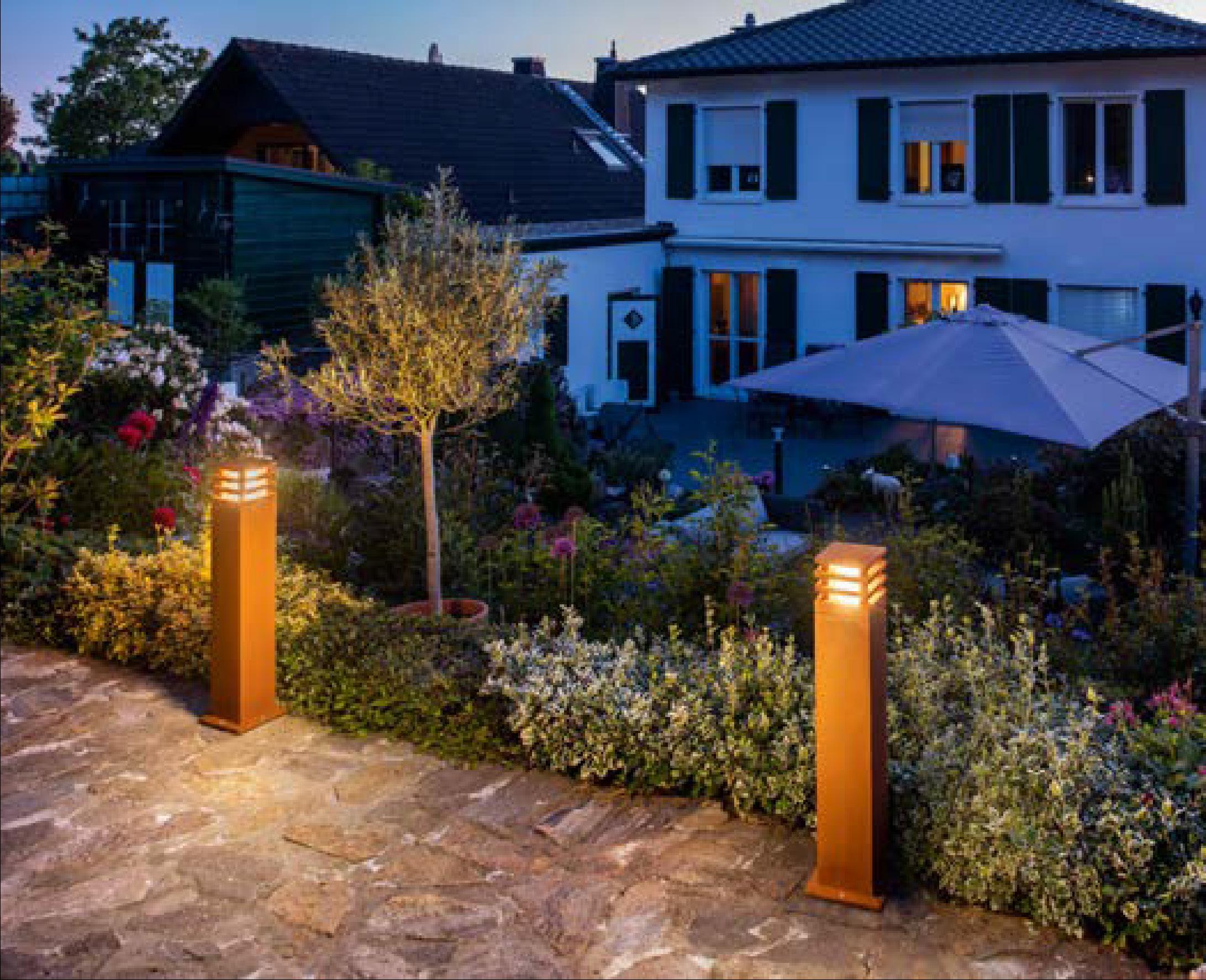 Hvis du ønsker indirekte lys, er RUSTY ® SLOT et perfekt valg. Gjennomtenkt design gir firkantede pullerter og veilamper godt lys der du skal gå. Robust, elegant, iøynefallende – det er RUSTY ® SLOT med asymmetrisk lysfordeling, tydelig formspråk og førsteklasses stabilitet