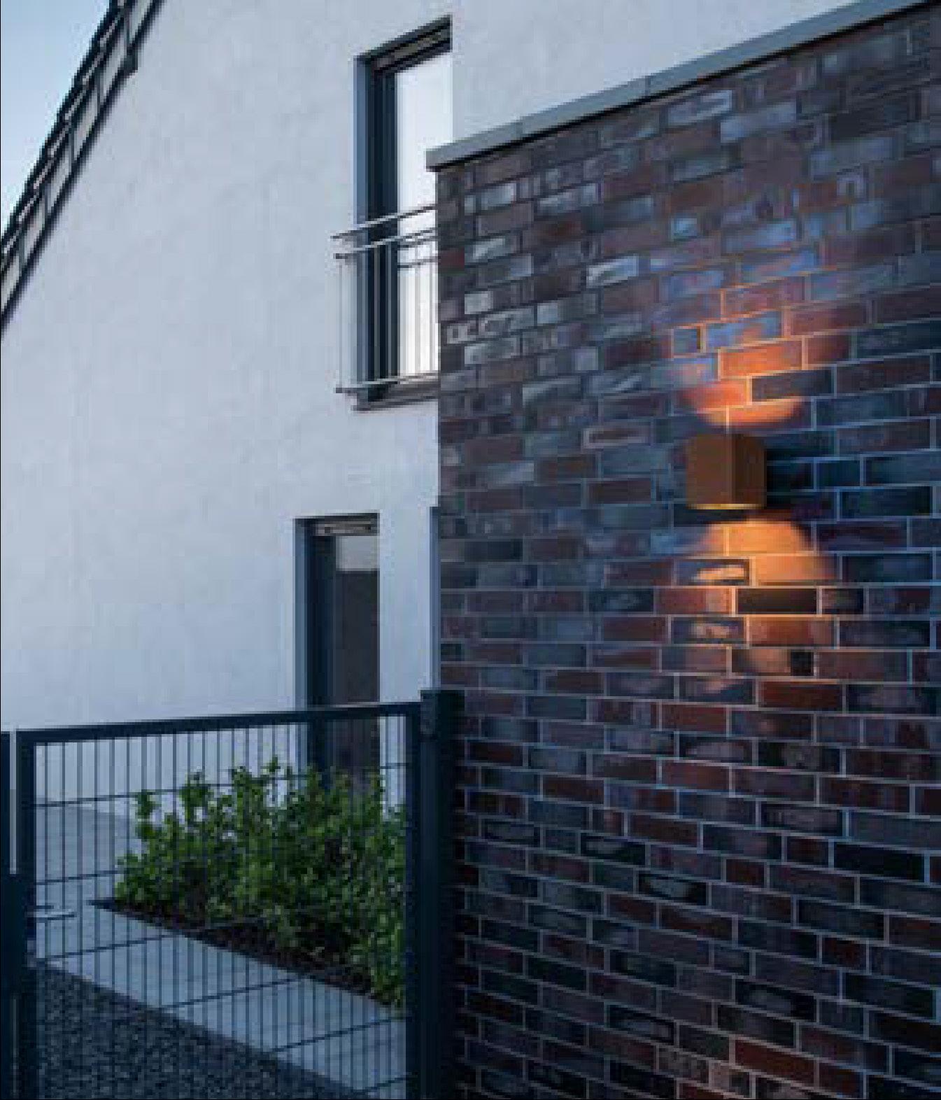 Med sine vakre rusttoner gjør RUSTY ® UP/DOWN fassaden enda vakrere. Firkantet eller rund, et helt spesielt utseende, som passer perfekt til røde klinkerfliser. Armaturene har et vakkert, indirekte lys og bruker holdbare COB LED. Via CCT-bryteren bytter du lysfarge (3.000K/4.000K) med et klikk. Perfekt – uansett bruksområde. Takket være kapslingsklasse IP65 er RUSTY ® UP/DOWN perfekt til alle bruksområder utendørs.