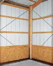 Add Morton Buildings’ steel with optional Hi-Rib™ acoustical steel panel at top of wall Finished view showing the ceiling enclosed with our optional acoustical Hi-Rib steel View of corner section before insulation Add blankets of insulation and air deflector Add vapor retarder and nailers