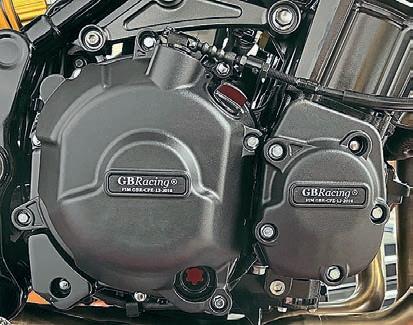 It’s not just track bikes that need crash protection – throwing your road bike into the scenery is just as expensive (and painful). Plus, retro-style roadsters like the Kawasaki Z900 RS have exposed motors which are easily wrecked – and look terrible once damaged. Enter the GBRacing case protectors for the Kawa: a three-piece set to cover the alternator, clutch and pulser casings. Made from tough impact-resistant polymers and supplied with all fittings, they sharpen the motor styling up a treat as well.