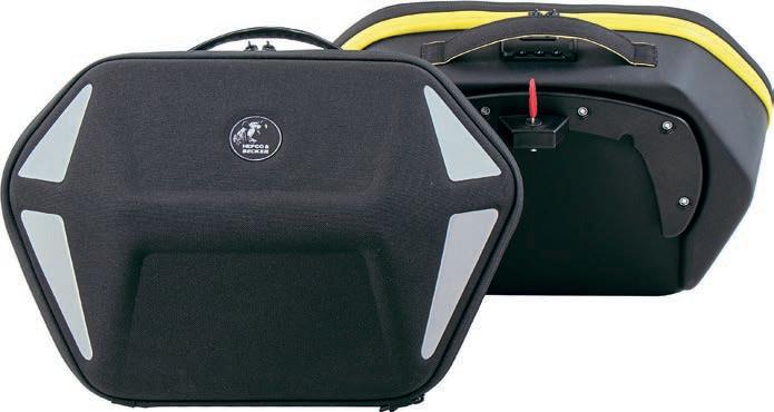 These semi-hard (!) cases from German firm Hepco & Becker are designed to fit most sports, adventure and naked bikes, using the firm’s C-Bow quick-release carrier brackets. They’re light, tough and lockable onto the bike, with zipper combination locks and an internal removable waterproof bag. Recommended weight is up to 5kg, and they’ll easily carry enough kit for a massive lads’ and/or lasses’ trip away. Available in black and grey, or with fluorescent yellow highlights.