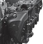 fromthe versionintheMT-09,withdifferent fuelinjection settingsand alteredfnaldrive ratios– butthefundamentalsofthe890cc inline-threeDOHC12vunit remainthesame, with aboreandstrokeof78x62mm and 11.5:1compression ratio.