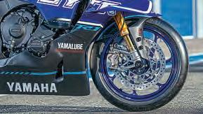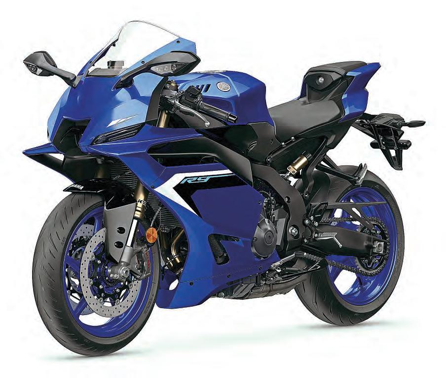 which claim to reduce front wheel lift 6-7 per cent at speed, and the overall aerodynamics of the full fairing is claimed to be better than on the old R6, despite having a bigger engine and radiator. Last but not least, the R9 is packed with up-to-date electronics, with leansensitive traction, ABS (switchable on the rear), anti-wheelie, slide control, engine brake control and power modes. There’s also the latest generation up/ down quickshifter, cruise control and Bluetooth connectivity, all accessed via a full colour LCD dashboard. There’s also an optional Y-Trac set-up aimed at track users, which adds full datalogging of all bike functions including lean angle and traction intervention, throttle position, gear, speed and engine revs, as well as a virtual pit board, that lets your pals in pitlane message ‘Gas it
