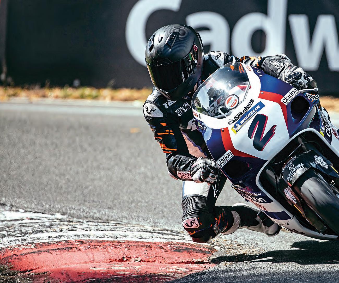 It’samazinghowafterallthose years, all ittooktogettheSRAD wasonelapof Cadwell Park,andnowIrealisewhereI was goingwrong.TheSRADis avery, very simplebike–and Imeanthatina