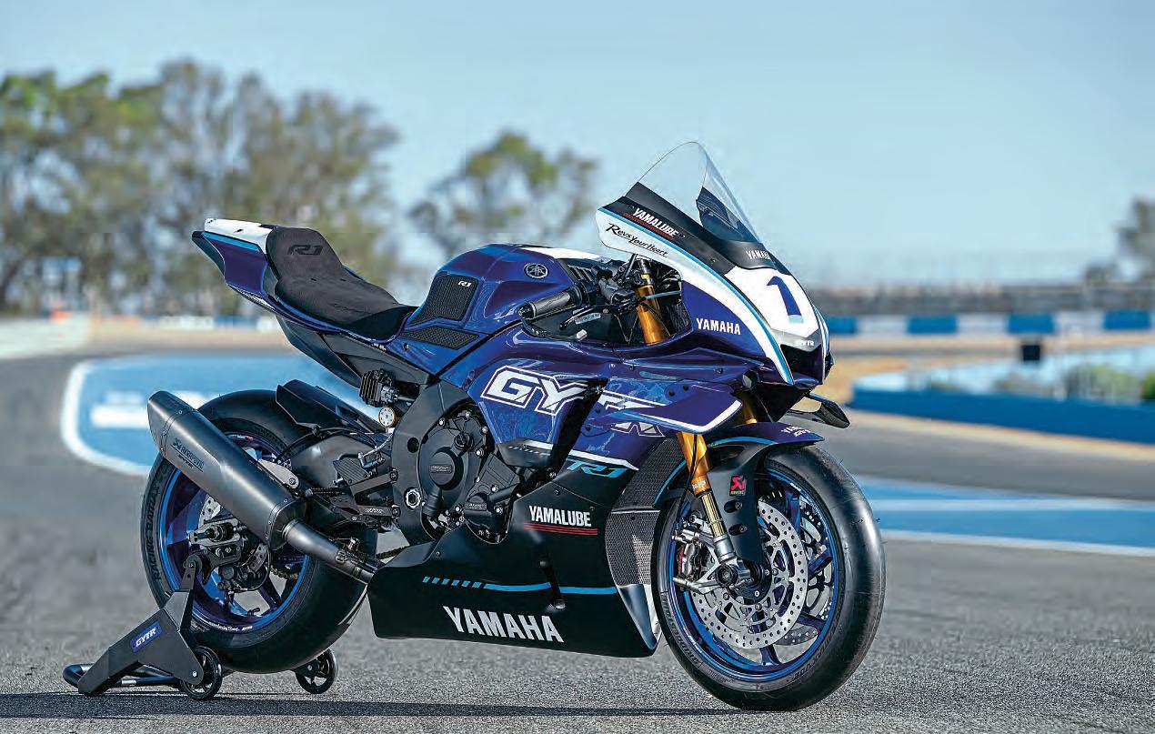 Amassiveshame,sinceit’sthebest-looking R1yet.The firm’sgivenit aset of carbon fibre aerowings,upratedBremboStylema brake calipersandmastercylinder,revisedKYBforks and alightmagnesiumrearwheel(wegiveit about afortnight beforesomeonehot-gluesall this kitontoa2024road bike).