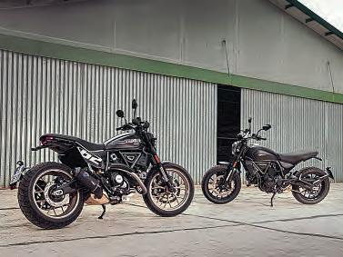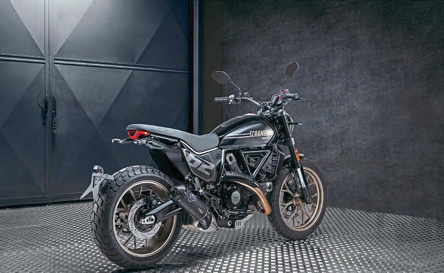 OneforthegothicDucatistioutthere –abraceof newScrambler800 modelstoitsline-upfor2025.The newIconBlackandFullThrottlemodelscatertoa perhapsnichesector: gothswholikerorty,classy, novice-friendly V-twinroadsters,withbothnew modelsavailableinblackonly.TheFullThrottledoes addsomeclassybronzehighlightstothe finish,as well as aneat Termignoniendcan,sumpguard,and an up/downquickshifter.Therearenoothermodsto thebasicScramblerengineorchassispackage,soyou getthe73bhp803cctwo-valveDesmodue V-twin motorin a176kgwetset-up,whichworksreallywell ontheroad,as wellaslookingprettysweet.Noprices as wewenttopress,butbothbikeswillbeavailable beforeChristmas.