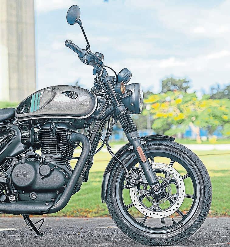 The Super Meteor also uses the same single 320mm disc and twopiston brake calliper set up as the other 650s, although the rear now has a slightly larger 300mm disc. They’ll have to work pretty hard though, because the bike weighs in at a healthy 241kg – although thankfully there is two-channel ABS on hand to help keep things in check.