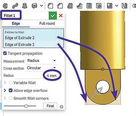 Step P6 – Use the Fillet tool to create the shape in 52